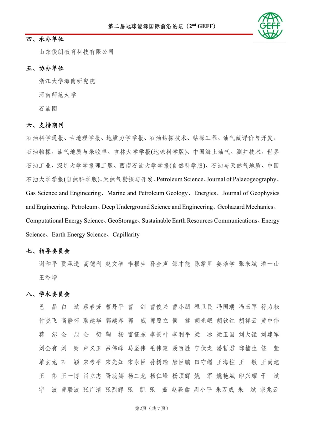 【第二轮通知】第二届地球能源国际前沿论坛(含指导和学术委员会名单)
