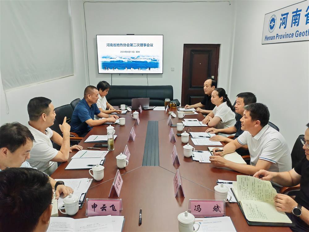 河南省地热协会第二次理事会于2024年8月13日在郑州顺利召开,省地质局一级调研员李广生主持会议。会议首先学习了党的二十大三中全会精神、习近平生态文明思想和能源资源安全保障的重要讲话。河南省省地质局党组成员、副局长唐志中出席会议并讲话。唐志中首先向协会各理事(会员)单位对协会工作的支持和为促进我省地热清洁能源高质量发展作出贡献的单位个人表示感谢。同时,对地热协会工作表示肯定。并要求地热协会在低碳能源转型的大背景下,积极践行习近平生态文明思想,围绕黄河流域生态保护和高质量发展、乡村振兴等国家战略以及省委省政府重大部署,积极推进地热清洁能源和资源开发利用。秉承“服务政府、服务社会、服务会员”的原则,发挥科研、高校、勘查、投资企业各自优势,把理论和实践、技术和工程、勘查和建设有机结合、取长补短、相互促进、形成合力,发挥好政府与企业桥梁和纽带作用;通过各专门工作委员会和专业委员会,在人才培养、科技创新、品牌打造等方面提供精准服务和支撑,为河南地热能高质量发展和“双碳”目标实现作出贡献。最后,唐志中为协会会长、副会长及秘书长颁发了聘书,并为副会长单位授牌。