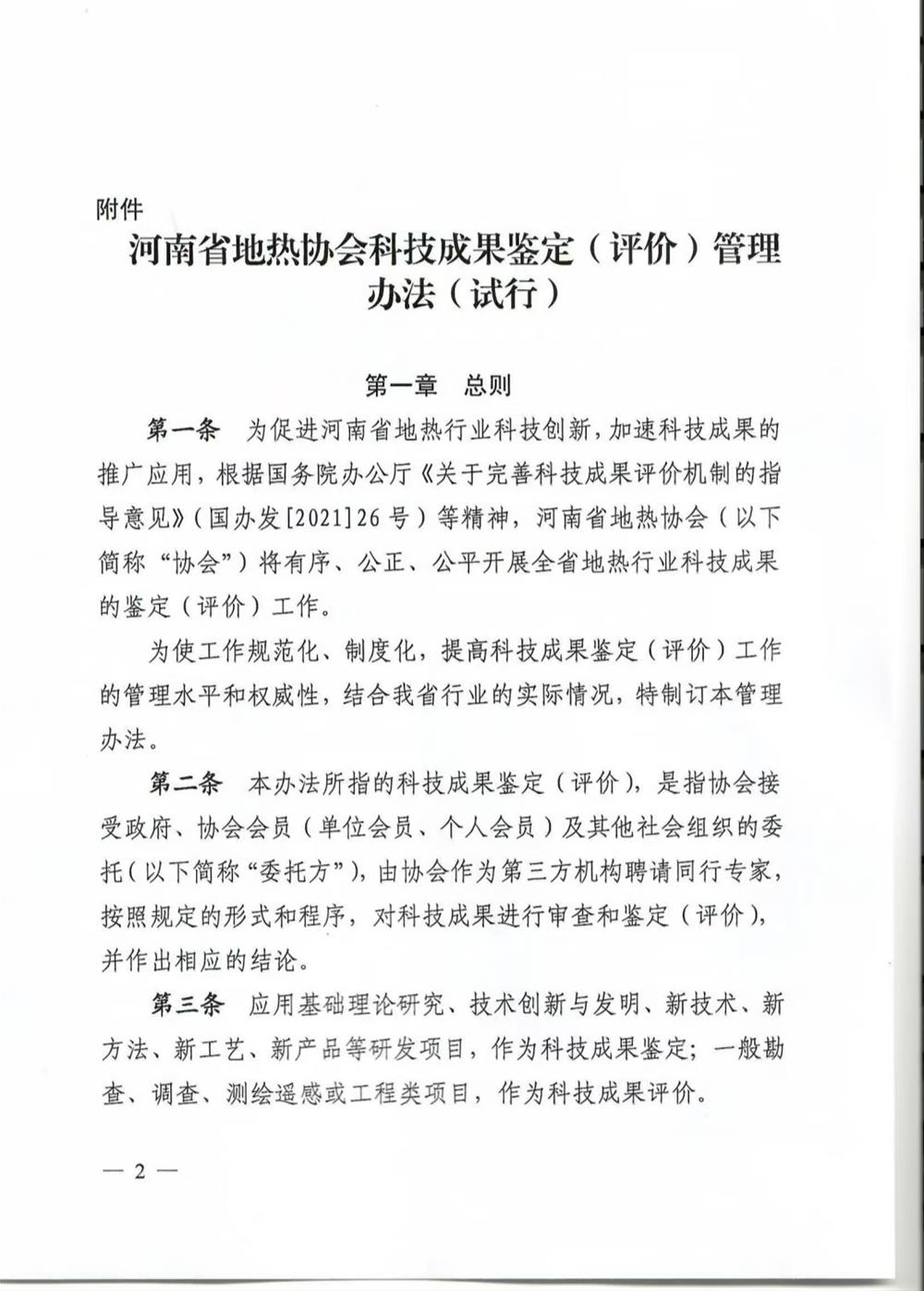 关于印发《河南省地热协会科技成果鉴定(评价)管理办法(试行)》的通知
